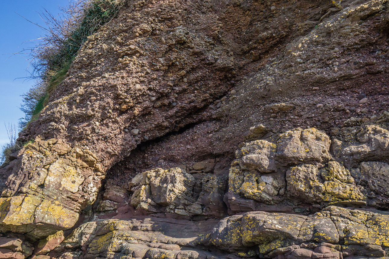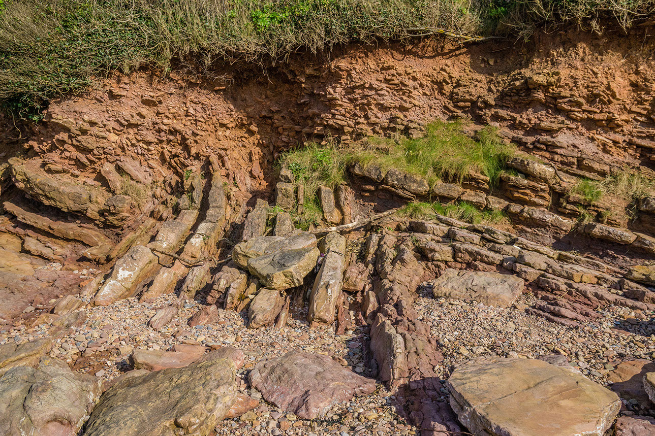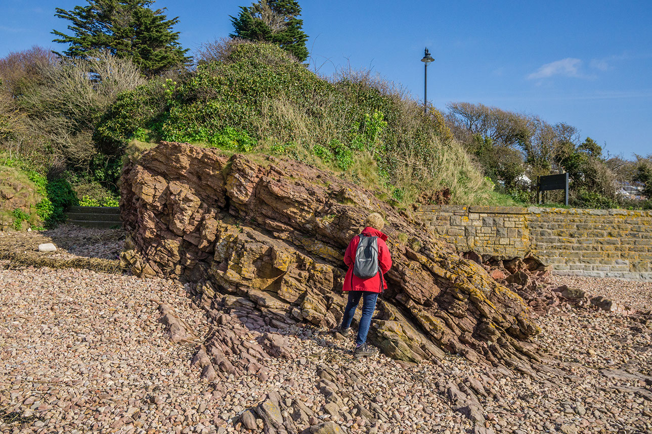 Pennant Sandstone, below the Royal Hotel, overturned and dipping south.