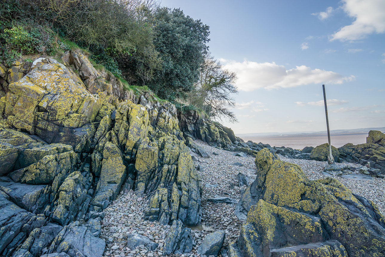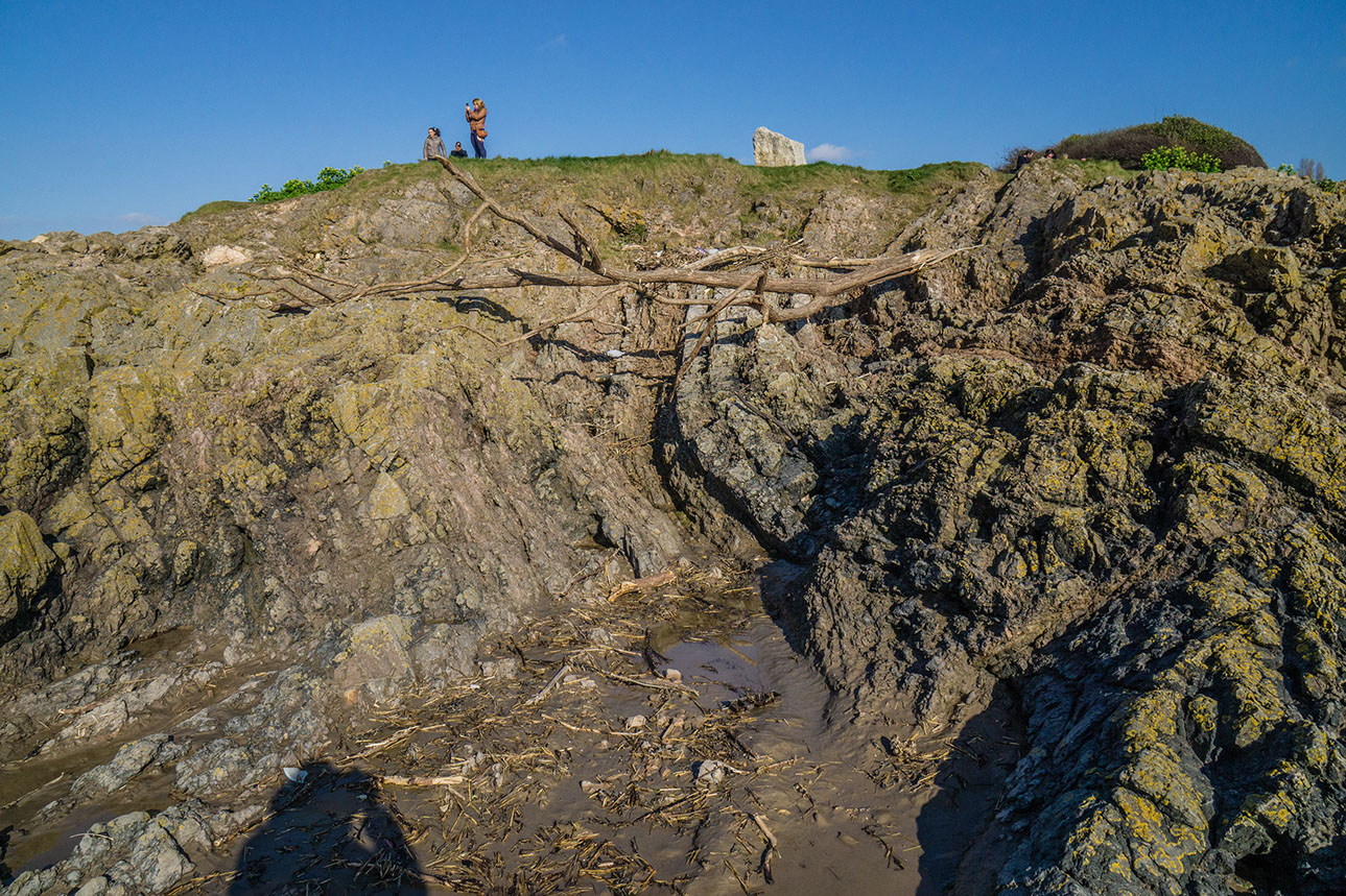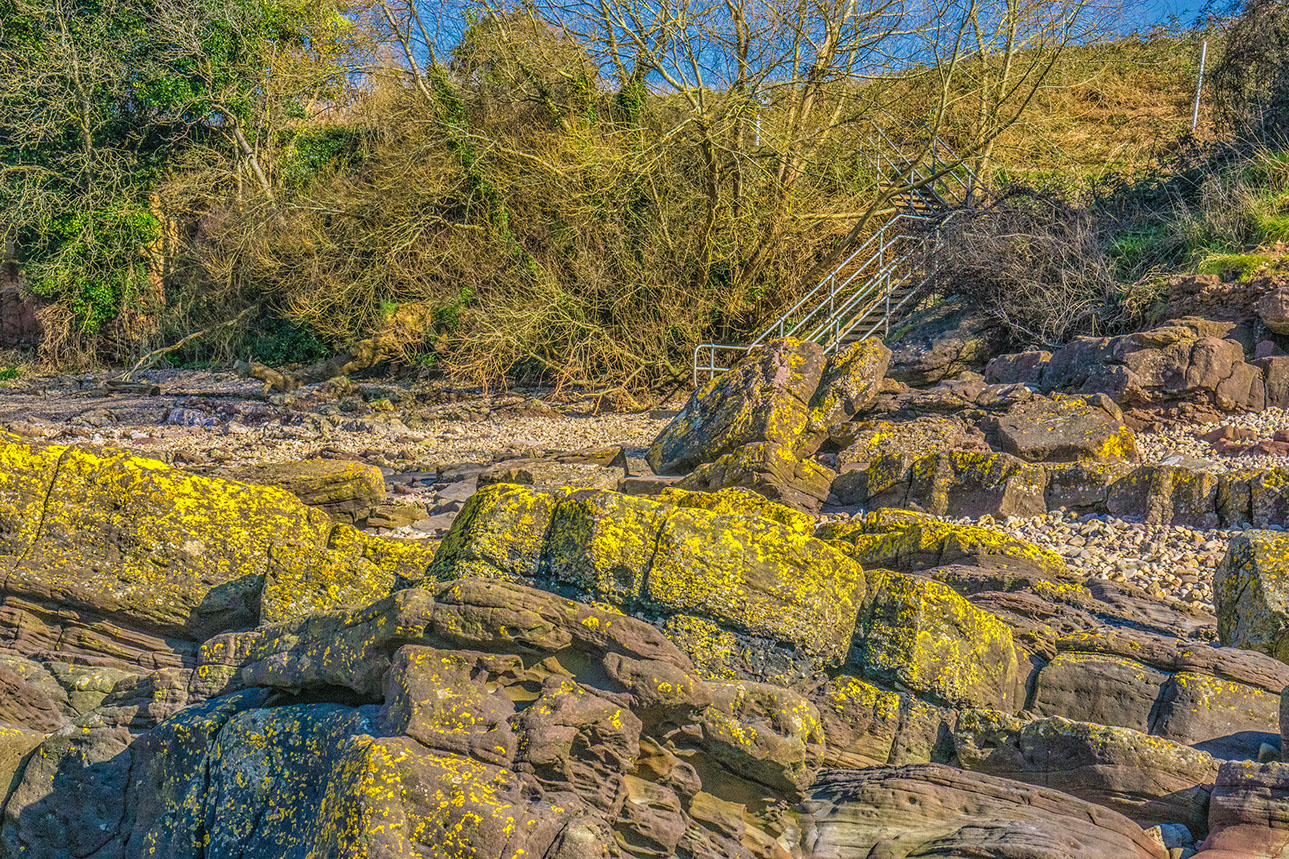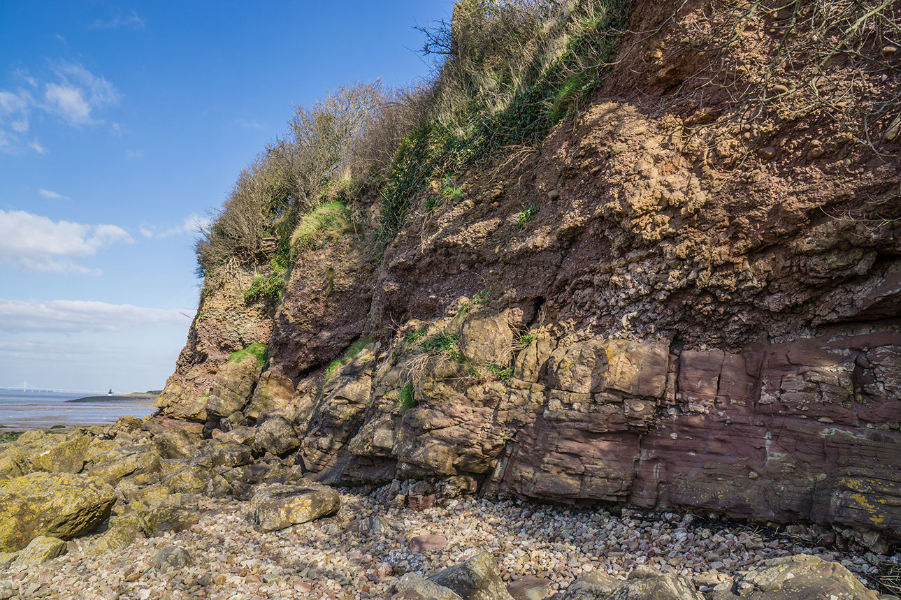 Pennant Sandstone, below the Royal Hotel, overturned and dipping south.
